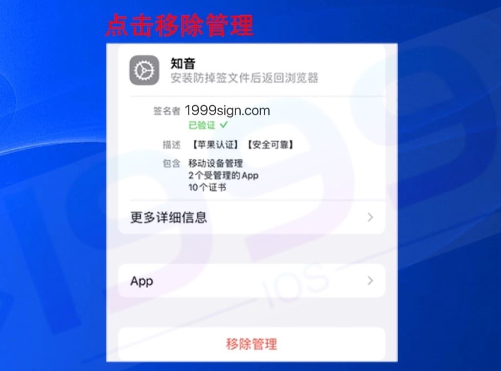 步骤:【设置-通用-设备管理-移动设备管理-移除管理】