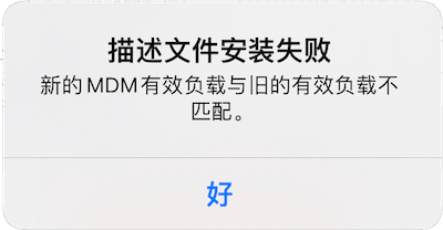如提示 MDM有效负载不匹配 或 描述文件已安装 ,请前往